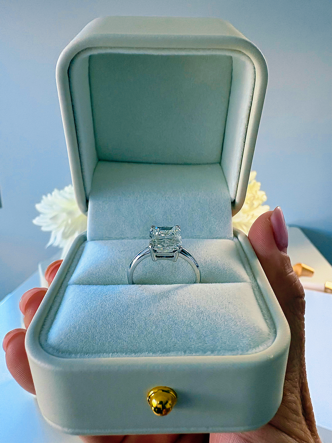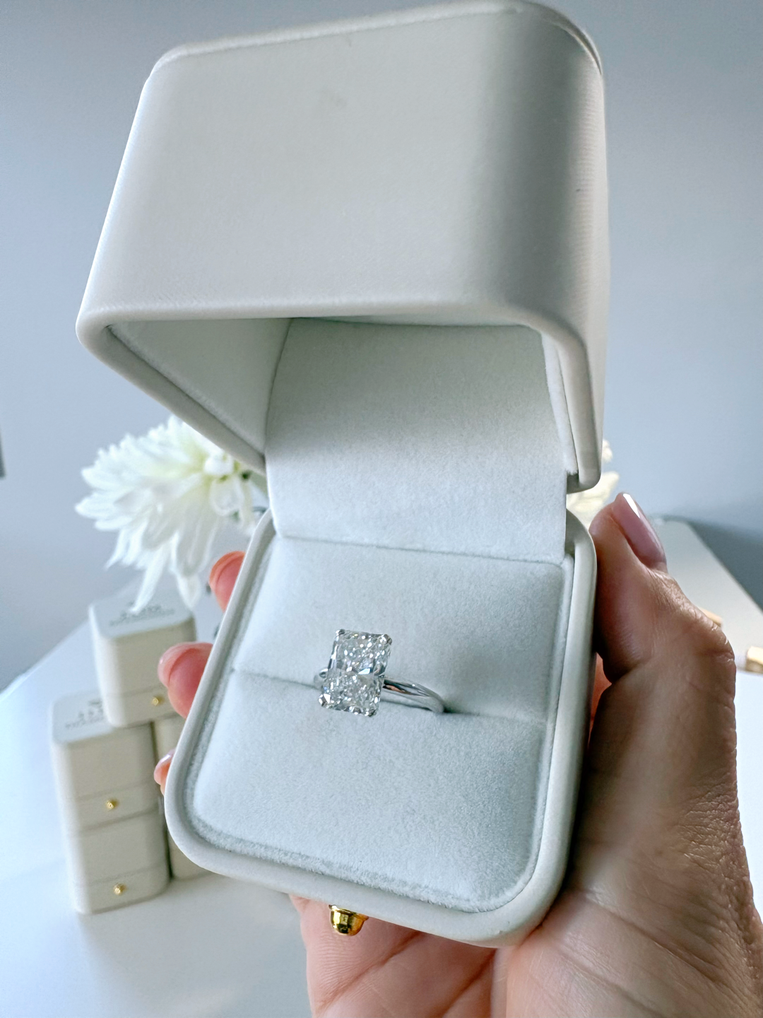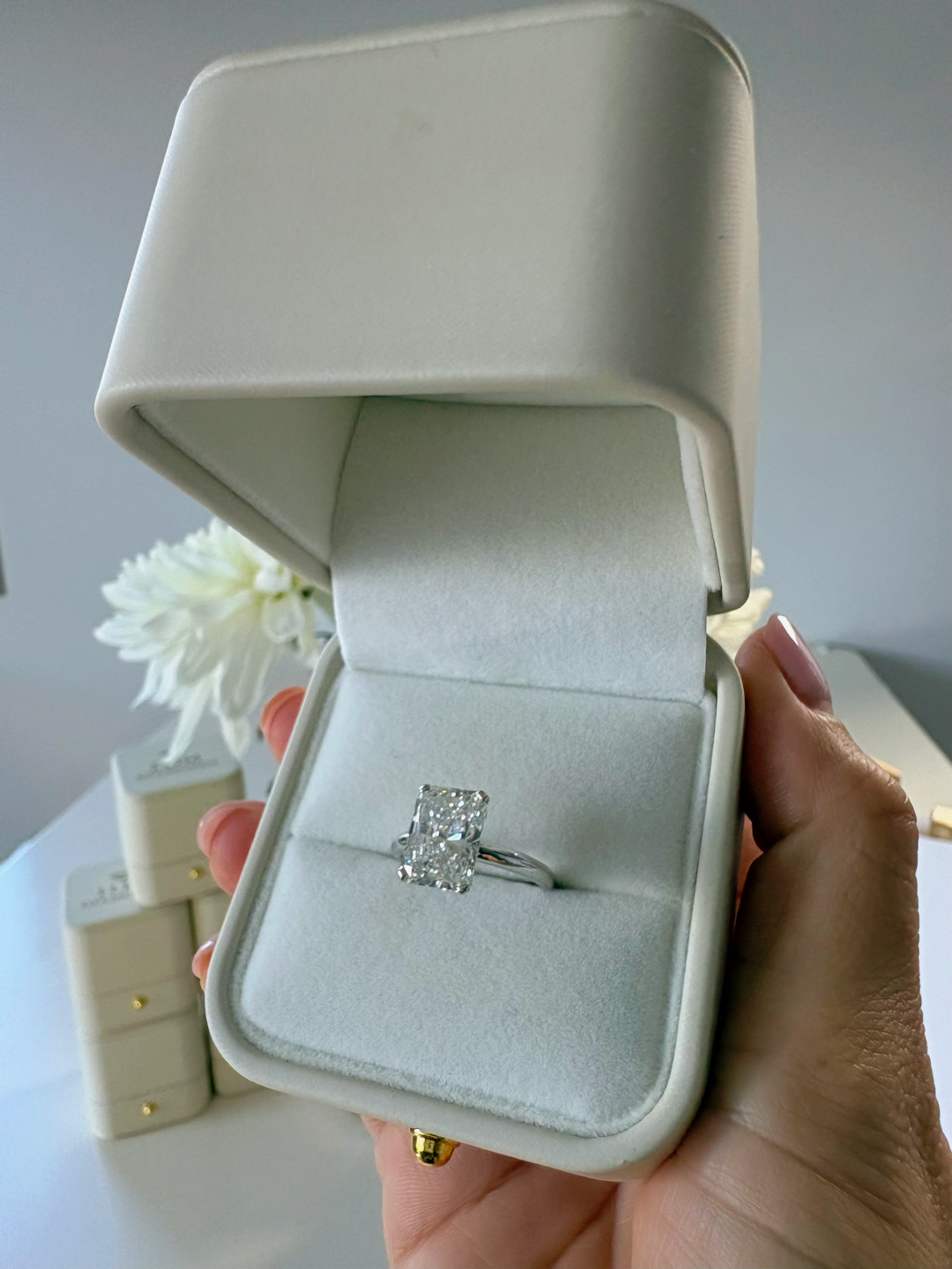 4.06 Carat Cut Cornered Rectangular Modified Brilliant Diamond Ring